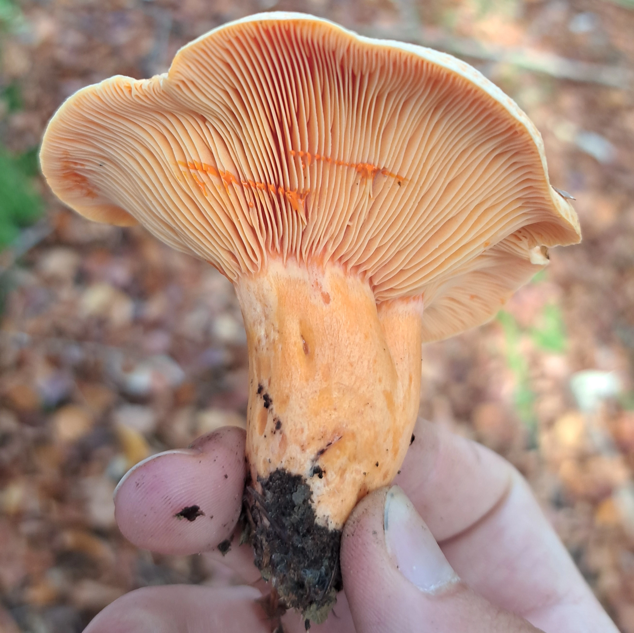 Lorsque l’on coupe ses lames, un liquide orange vif en sort (du latex, caractéristique des lactaires). Le lactaire sanguin, lui aussi comestible, a un liquide rouge.